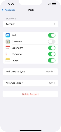 Press the name of the Exchange email account you've just set up.