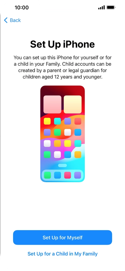 If your phone will be used by a child below the age of 13, follow the instructions on the screen to set up an Apple ID for the child.