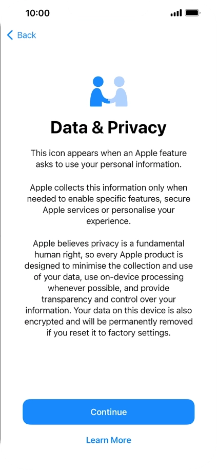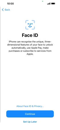 Follow the instructions on the screen to turn on use of Face ID or press Set Up Later.