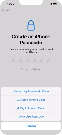 Follow the instructions on the screen to turn on use of phone lock code or press Don't Use Passcode.