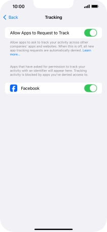 Press the indicator next to "Allow Apps to Request to Track" to turn the function on or off.