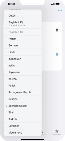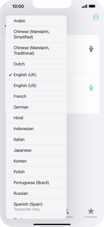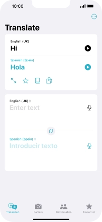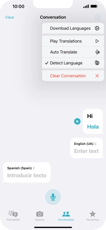 To translate speech, press the microphone icon and say the required word or sentence.