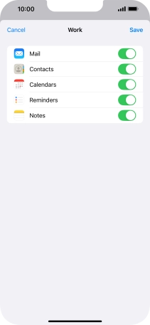 Press the indicators next to the required data types to turn synchronisation of each data type on or off.