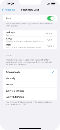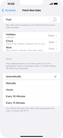 8. Select setting for retrieval of new email messages