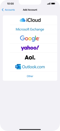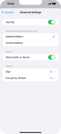 Press the required email account and follow the instructions on the screen to select settings for the specific account.