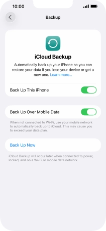 Press the indicator next to "Back Up Over Mobile Data" to turn the function on or off.