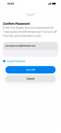 Key in the password for your Apple Account and press Turn Off. Wait a moment while the factory default settings are restored. Follow the instructions on the screen to set up your phone and prepare it for use.