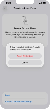 Press Reset All Settings. Wait a moment while the factory default settings are restored. Follow the instructions on the screen to set up your phone and prepare it for use.