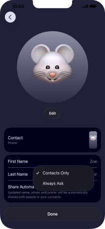 Press the name fields and follow the instructions on the screen to edit your name on the Contact Poster.