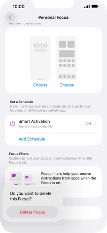 Press the required setting below "Set a Schedule" and follow the instructions on the screen to set up automatic activation of the selected focus mode.