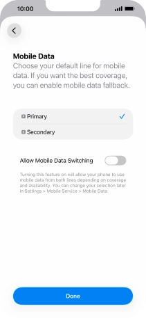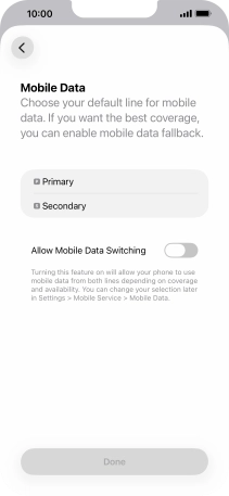 Press the indicator next to "Allow Mobile Data Switching" to turn the function on or off.