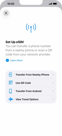 Place the QR code you've received inside the phone camera frame to scan the code. Your eSIM is transferred to your new phone over the internet.