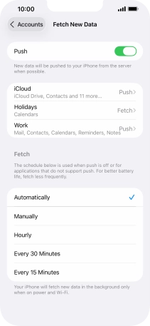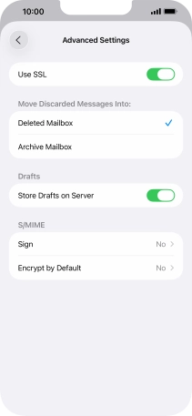 Press the required email account and follow the instructions on the screen to select settings for the specific account.