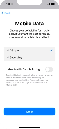 Press the indicator next to "Allow Mobile Data Switching" to turn the function on or off.