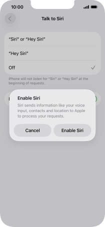 Press the required setting to turn the function on or off. If you turn on the function, you need to follow the instructions on the screen to set up Siri to recognise your voice.