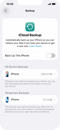 Press the indicator next to "Back Up This iPhone" to turn on the function.