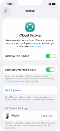 Press the indicator next to "Back Up Over Mobile Data" to turn the function on or off.