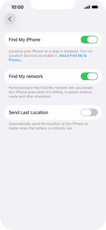 Press the indicator next to "Send Last Location" to turn the function on or off.