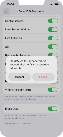 Press the indicator next to "Erase Data" to turn the function on or off.