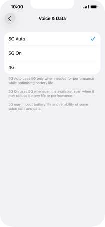 To turn on automatic switch between 5G and 4G, press 5G Auto.