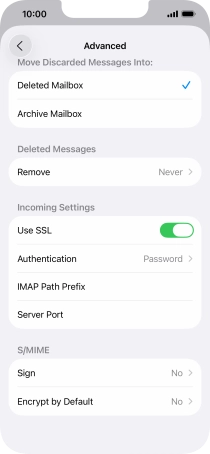 Press the required email account and follow the instructions on the screen to select settings for the specific account.