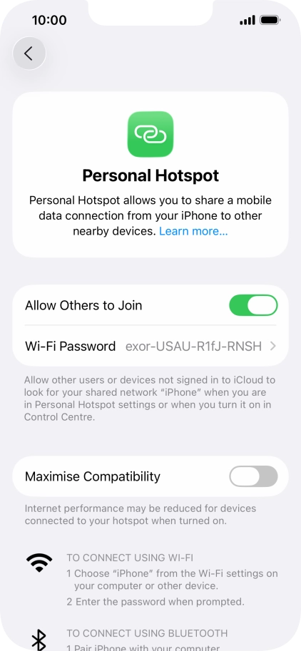 To use your phone as a personal hotspot, you need to turn on the function and establish a connection from the other device to your phone's hotspot.