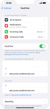 Press the required setting below "YOU CAN BE REACHED BY FACETIME AT".