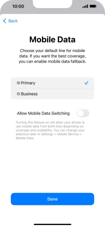 Press the indicator next to "Allow Mobile Data Switching" to turn the function on or off.
