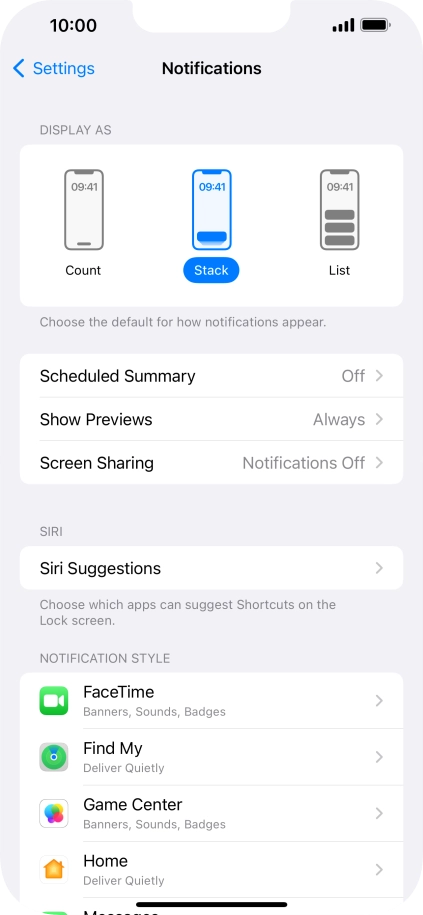 You can turn display of notifications when using SharePlay or Screen Mirroring on or off.