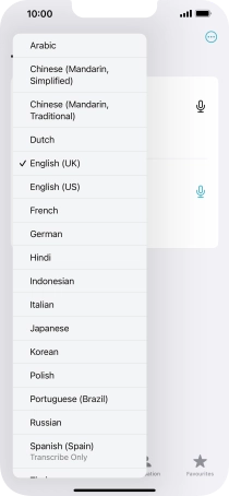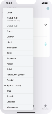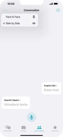 To translate speech, press the microphone icon and say the required word or sentence.