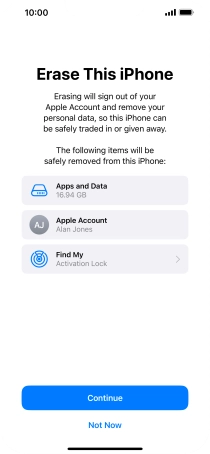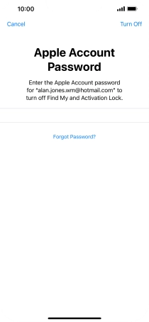 Key in the password for your Apple ID and press Turn Off. Wait a moment while the factory default settings are restored. Follow the instructions on the screen to set up your phone and prepare it for use.