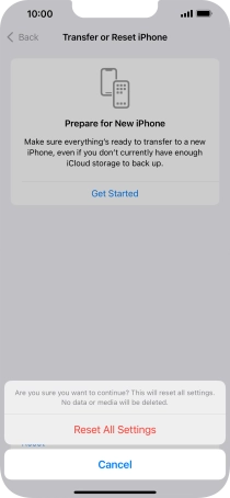 Press Reset All Settings. Wait a moment while the factory default settings are restored. Follow the instructions on the screen to set up your phone and prepare it for use.