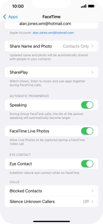 Press the required setting below "YOU CAN BE REACHED BY FACETIME AT".