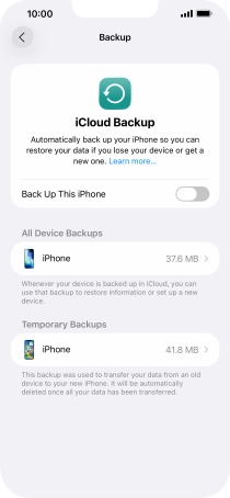 Press the indicator next to "Back Up This iPhone" to turn on the function.
