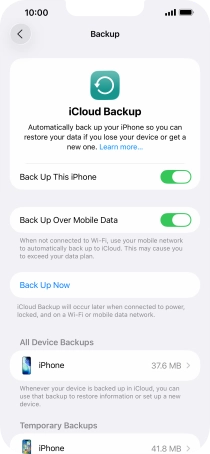 Press the indicator next to "Back Up Over Mobile Data" to turn the function on or off.