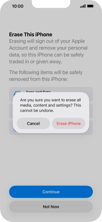 Key in the password for your Apple Account and press Turn Off. Wait a moment while the factory default settings are restored. Follow the instructions on the screen to set up your phone and prepare it for use.