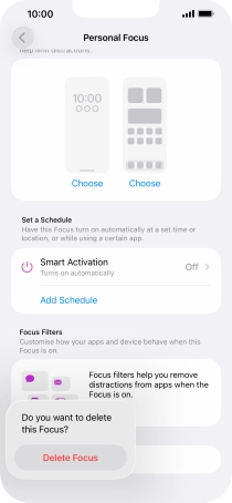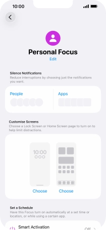 Press the required setting below "Set a Schedule" and follow the instructions on the screen to set up automatic activation of the selected focus mode.
