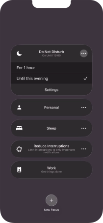 You can set your phone to activate the selected focus mode for a specified period of time, at a specific location or while using a specific app.