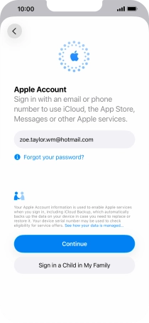 An Apple Account gives you access to a number of services on your phone such as iCloud, App Store and iTunes. To activate an Apple Account on your phone you need to set up your phone for internet.