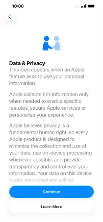 Select the required text and icon size on your phone and press Continue.