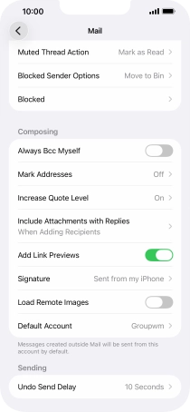 Select default email account on your Apple iPhone 14 Plus iOS 26