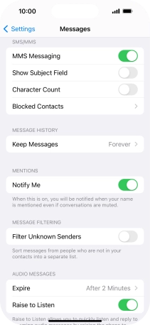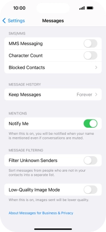 Press the indicator next to "MMS Messaging" to turn on the function.