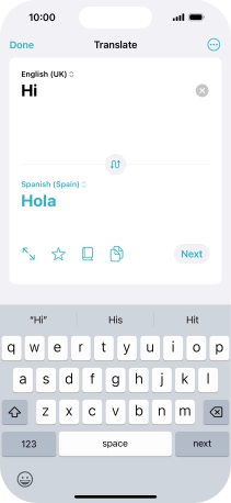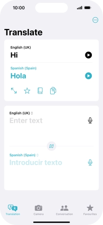 To translate speech, press the microphone icon and say the required word or sentence.