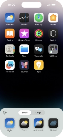Press the required setting to select the size of app icons on the home screen.
