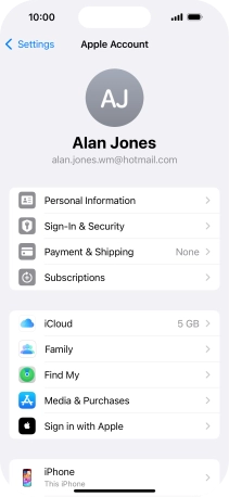 Press your Apple ID.