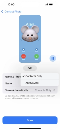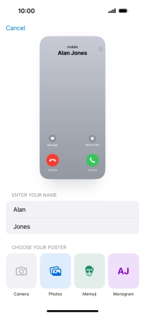 Press Name and follow the instructions on the screen to edit your name on the Contact Poster.