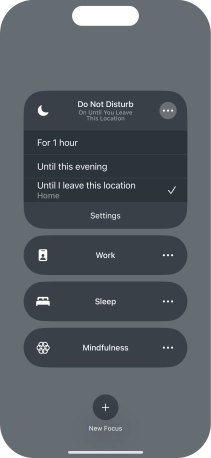 You can set your phone to activate the selected focus mode for a specified period of time, at a specific location or while using a specific app.