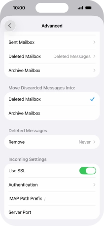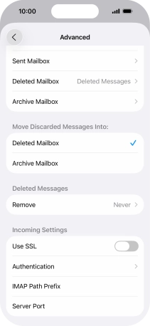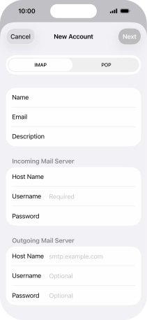 Press the required email account and follow the instructions on the screen to select settings for the specific account.