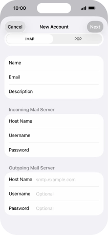 If this screen is displayed, you email account has been recognised and set up automatically. Follow the instructions on the screen to key in more information and finish setting up your email account.