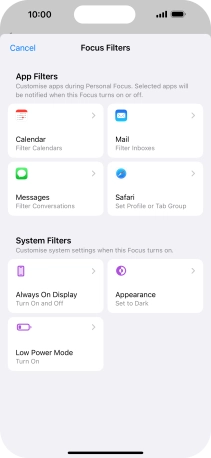 Press Apps and follow the instructions on the screen to select which apps you would like to receive notifications from when the selected focus mode is active.